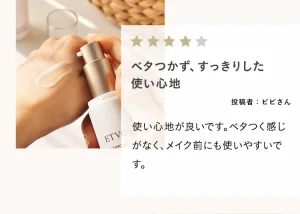 - 国産の安全性:エトヴォスの製品は日本国内で製造されており、厳しい品質管理が行われています。敏感肌の方でも安心して使えるのが大きなポイントです。