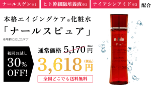 ナールスピュアを公式サイトで購入すると、通常価格5,170円(税込)のところ、初回お試し30%OFFで3,618円(税込)で手に入れることができます。