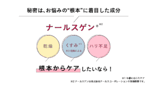 ナールスゲン®は、これらの効果を実現するために独自に開発された成分で、エイジングケアに最適なアイテムとなっています。