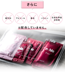 特に敏感肌の方には嬉しいポイントで、合成香料やアルコール、合成着色料を使用していません。