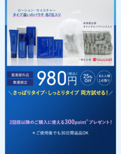 さらに、初回980円(税込)というお得な価格で、30日以内返品OKという安心のサポートがついているので、リスクなく試すことができます。
