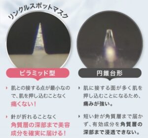 Quasiaクオシアリンクルスポットマスクのニードルは、世界7か国のグローバル特許を取得したマイクロニードル技術を使用しています。