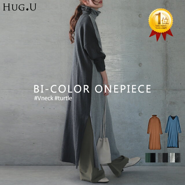 - 19 SALE!【あす楽】 ニットワンピース ニット タートルネック ハイネック ワンピース ロングワンピース ロングワンピ ニットワンピ スリットワンピース リブニット リブ スリット 長袖 ドロップショルダー きれいめ ワンピ レディース 大きいサイズ 体型カバー 秋 冬