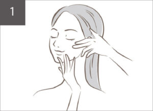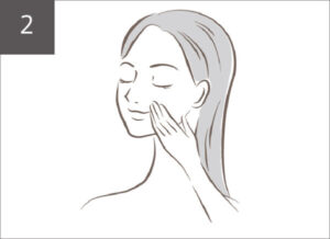 2. お顔の中心から外へ、下から上へ持ち上げるようにやさしくのばして、浸透を促しましょう。